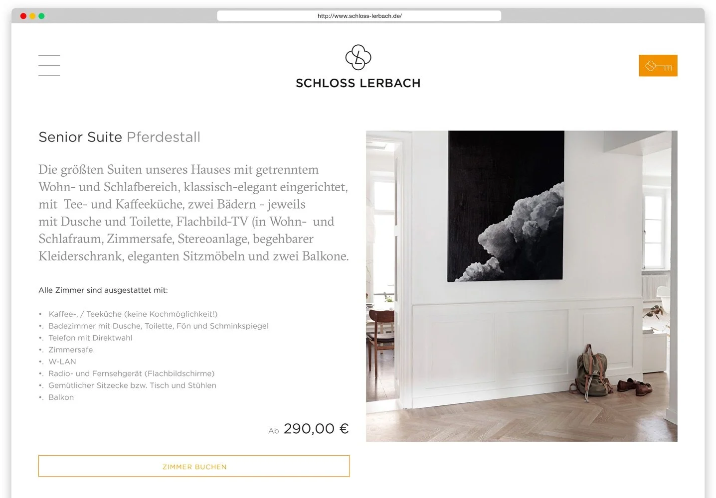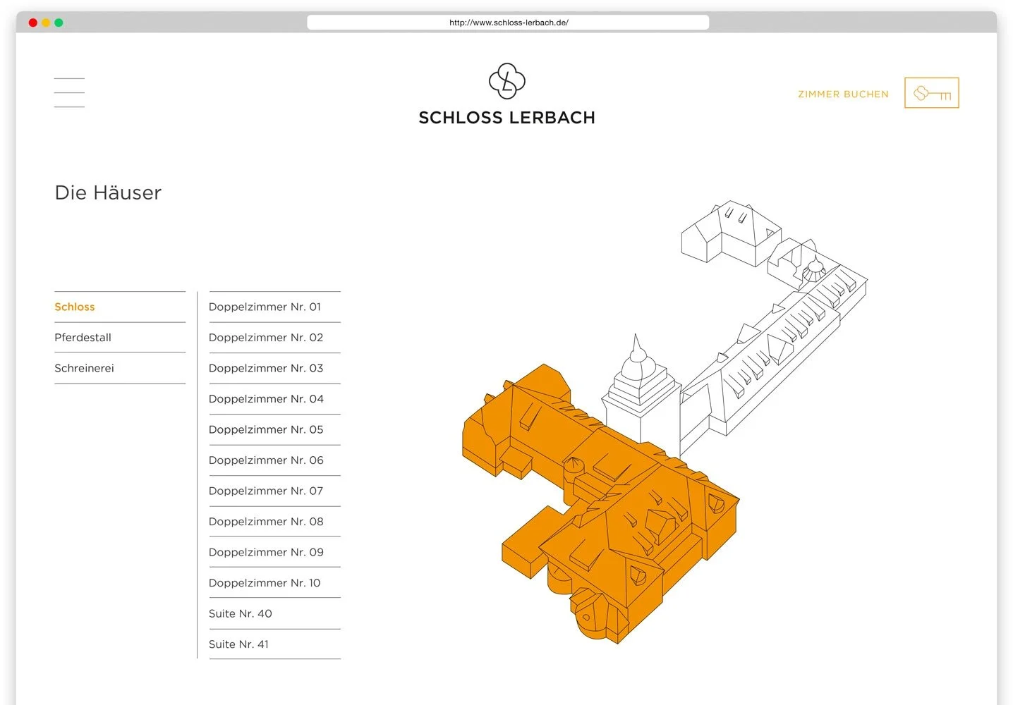 I designed a website concept for Hotel Schloss Lerbach that combines elegant design with functionality. The responsive design ensures a seamless user experience across all devices. Key features include an optimised booking tool for easy reservations and an interactive map to help guests locate rooms within the historic building. This concept enhances both the aesthetic appeal and usability of the hotel's online presence.